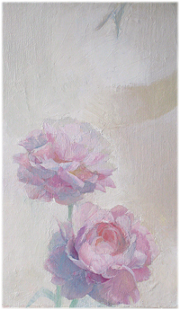 光に咲く 徒然 2011年07月06日 「光に咲く」M6号油彩 平成23年7月20日(水)より倉敷天満屋美術画廊 『~関野倫宏・智子作品展~森に遊ぶ―絡繰+絵画』にて展示予定 夫の初期代表作に『黒揚羽+華』という絡繰があります。 今回は全くジャンルなる夫とのコラボということで、 夫の作品の世界感を私なりに咀嚼してみました。 芍薬のうっとりとするような香りと、 水分を多く含んだぼってりとした花の感じが出たらいいなと思って描きました。 これには対になる「空に咲く」という作品もあります。 こちらは会場にてご覧ください。