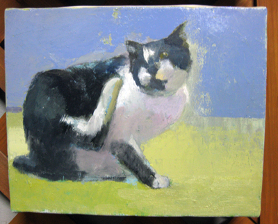 かゆがる猫 制作 2012年11月22日 今日描き始めた小さな猫の絵。 描き急いでしまったので、全体的に色が痩せてる・・・。ふくよかな色に変換しなくては。 似せる必要ないのですが、うちの市松の感じがよく出てます。