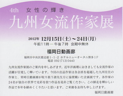 12月15日より福岡日動画廊にて『4th女性の輝き 九州女流作家展』が開催されます。