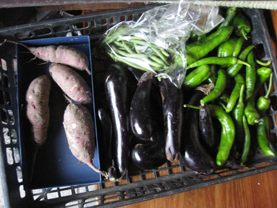 教室でのおやつは受講生の方が持ってきてくださった梨やおせんべいや大学芋。