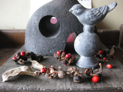 拾って帰ってきて、玄関のオブジェと一緒に飾ってみました。