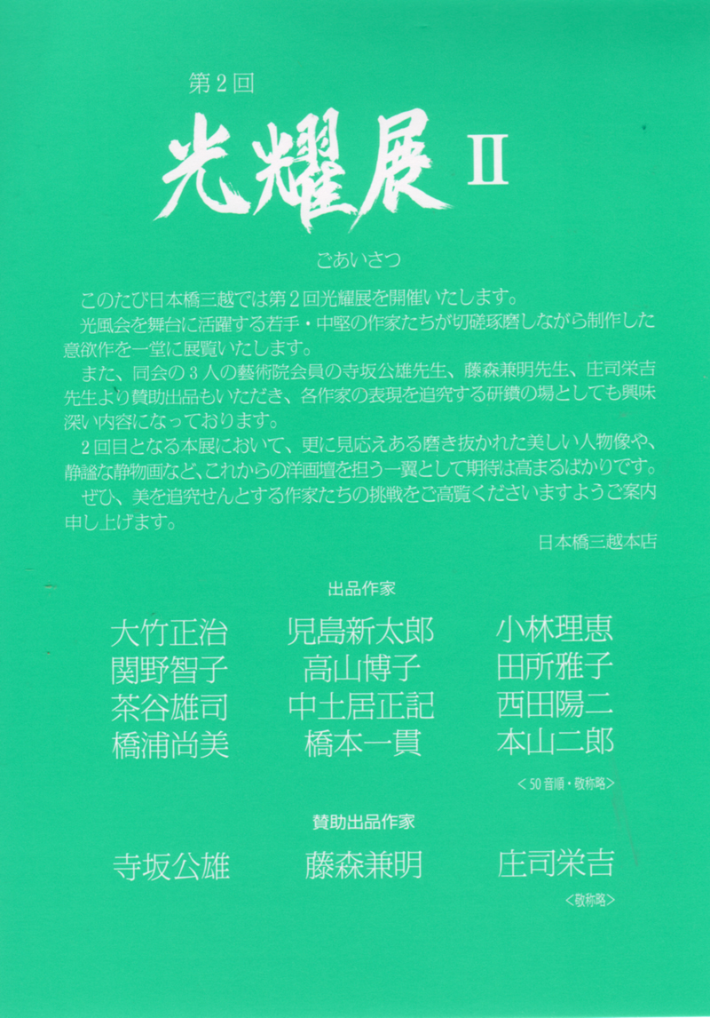 8月6日(水)~8月12日(火)まで日本橋三越美術画廊にて『第2回光耀展Ⅱ』が開催されます。