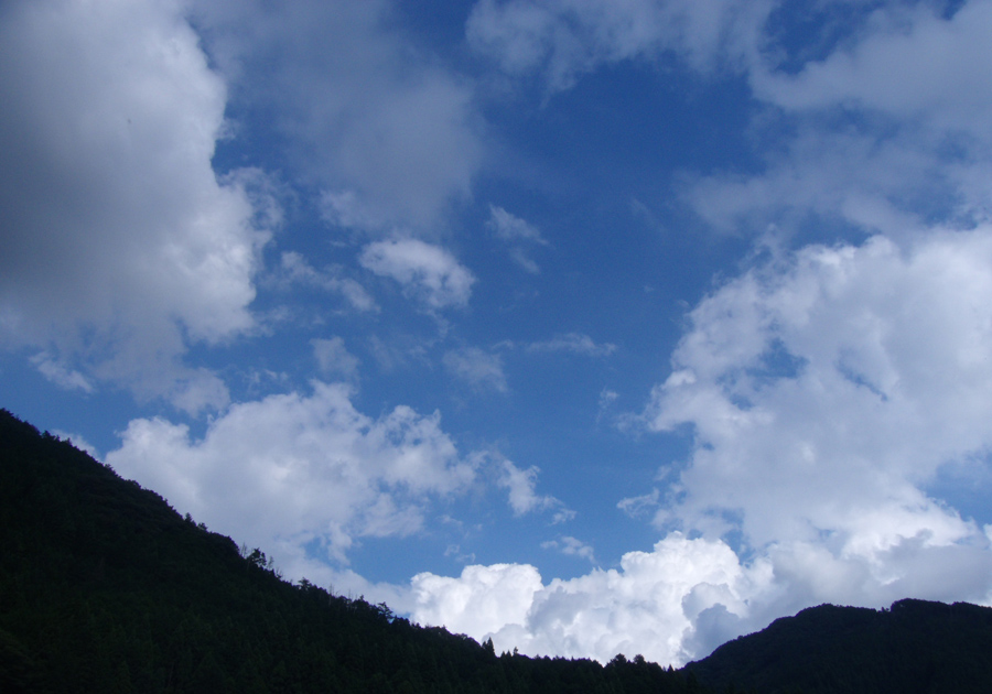 入道雲のすぐそばに鱗雲や筋雲が。夏と秋の境目の空でした。