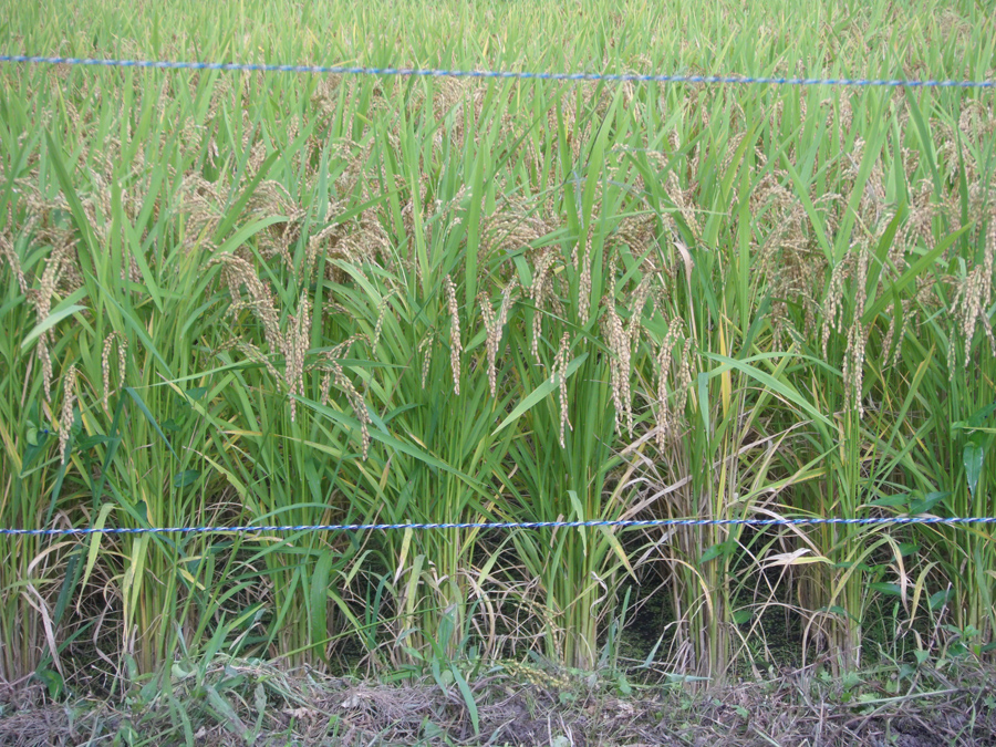 庭のすぐそばの田んぼの稲穂はすっかり首を垂れています。