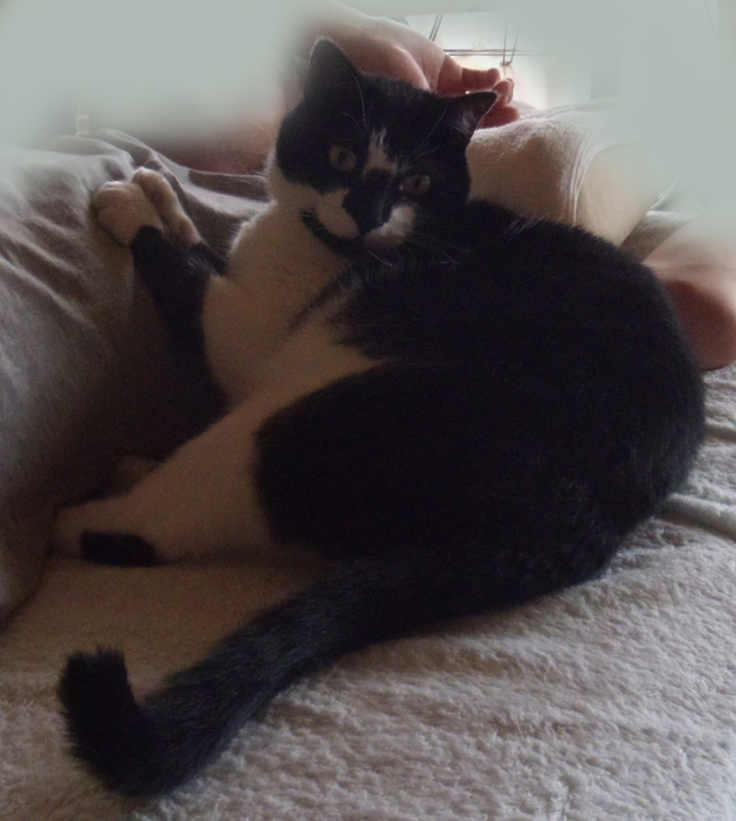 久々に会った猫の市松。涼しくなったのでご主人様の体に肉球をつけて満足げです。