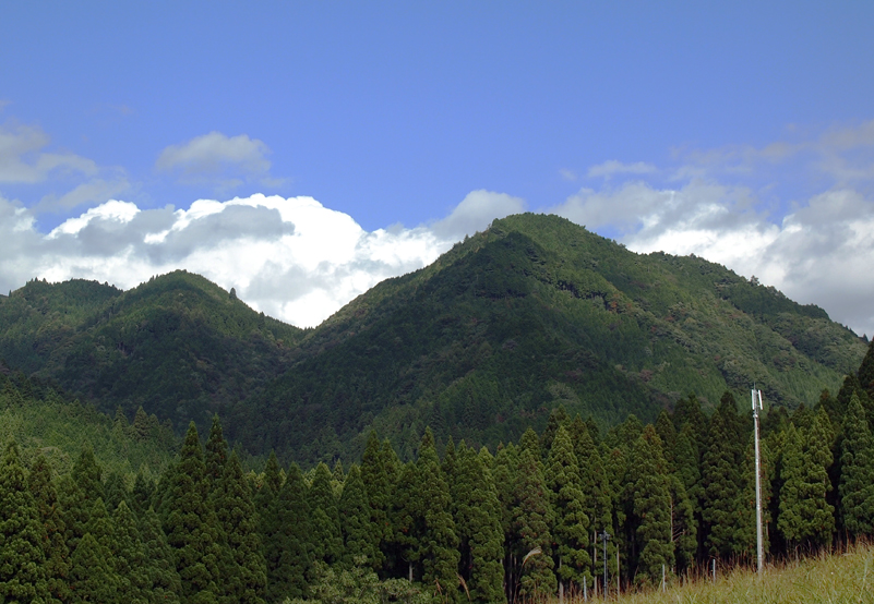 秋晴れの澄んだ空に、まだ緑の山、山の向こうの真っ白な雲が流れていく様子がとても綺麗でした。