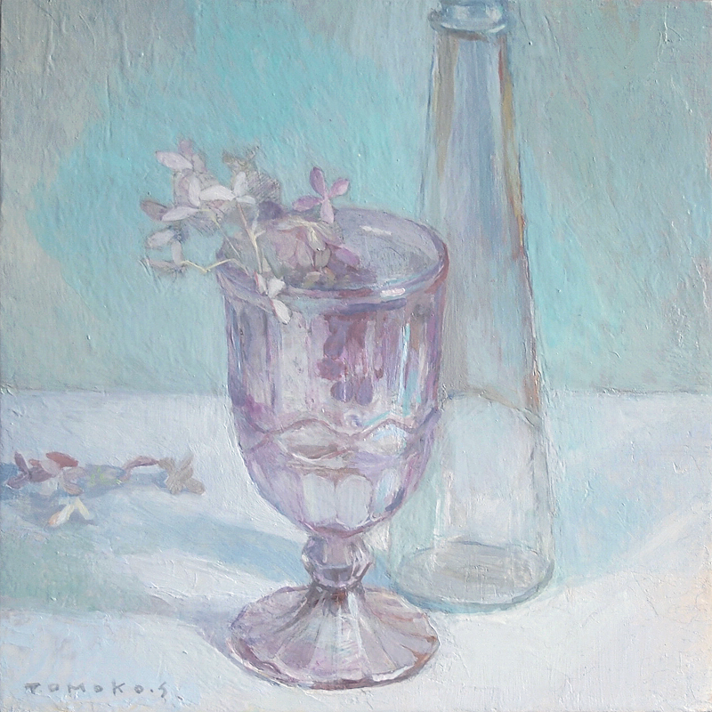 以前描いていた鳥と青い瓶が登場する絵は、途中で思うところあって制作をやめ、モチーフを総入れ替えして仕上げました。
