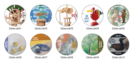下段:缶バッジ第二期デザイン10種