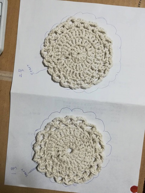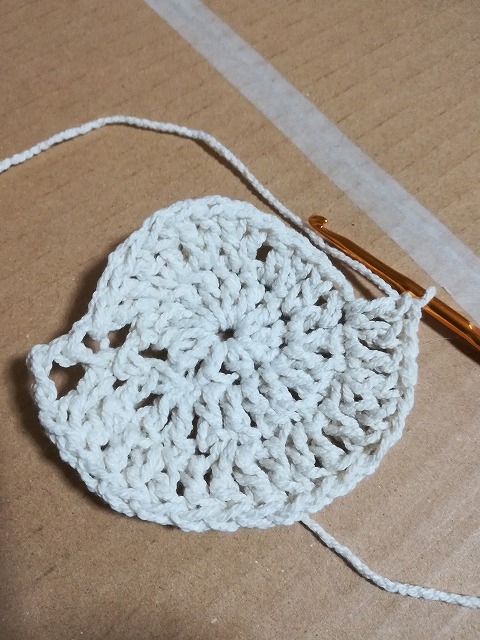 初心者向けのかぎ針編みYouotube動画を観ながら。力加減が分からずなんだか目が不均一です。