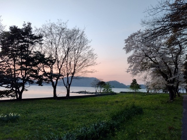 4月1日、鳥取青島で夕暮れと桜を堪能。