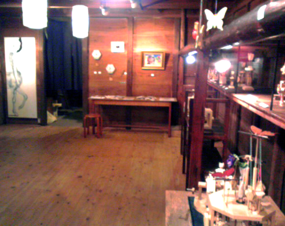 自然光が入る蔵に通じる通路には絵画作品を並べております。