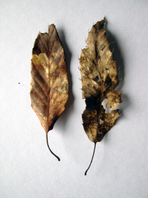 朽ちた葉もアトリエで見ると反射光でかすかに水色も感じられるのです。