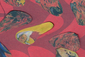 過剰装飾展の準備 第2段 制作 2012年11月26日 過剰装飾展の図録に載せる作品制作に入りました。 今日は一日かけてエスキース制作。 (写真はその一部をゆがめたもの) 楽しく制作できそうです。 キーワーそのものが好きな私にはかなり楽しい時間となりました。 6号の正方形ぐらいがベストなサイズのような気がします。 明日から下描き。 早く仕上げなくては。