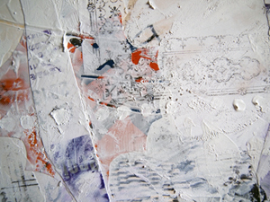 過剰装飾展 1点目 制作 2013年11月20日 昨日完成した過剰装飾展1枚目の部分。縦長の作品です。 アクリルのメディウムを上手に使えばしっとりとした奥行きのある画面になったのかも。 それは別の作品で試します。 今日は午前中に書類仕事を終わらせたらすぐ2枚目に取り掛かる予定。 こちらはホームセンターで購入した水性スプレーを多用してつくります。 ちょっと楽しみ。